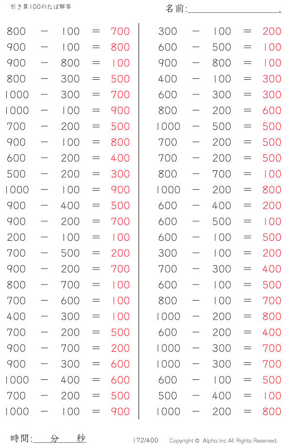 引き算100のたば [解答]172/400