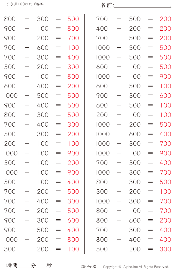 引き算100のたば [解答]250/400