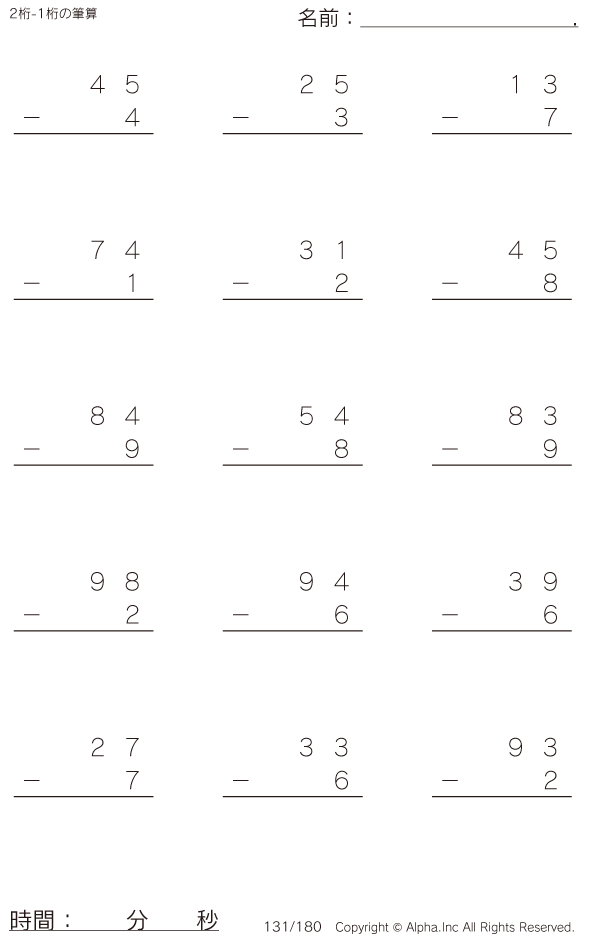 2桁-1桁の筆算 [問題]131/180