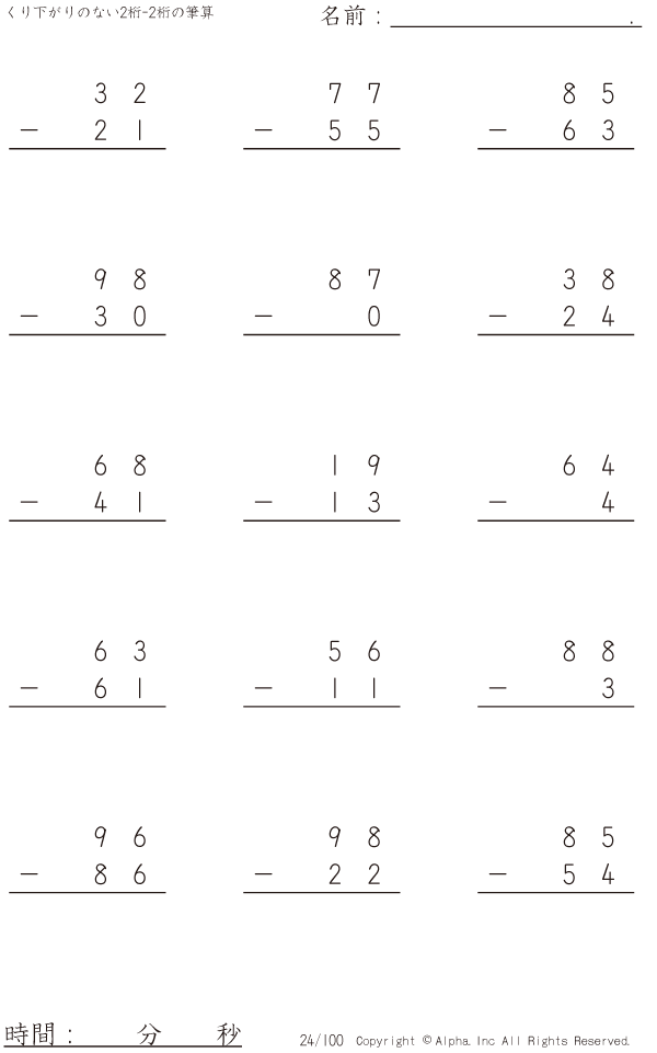 くり下がりのない2桁-2桁 [問題]024/100