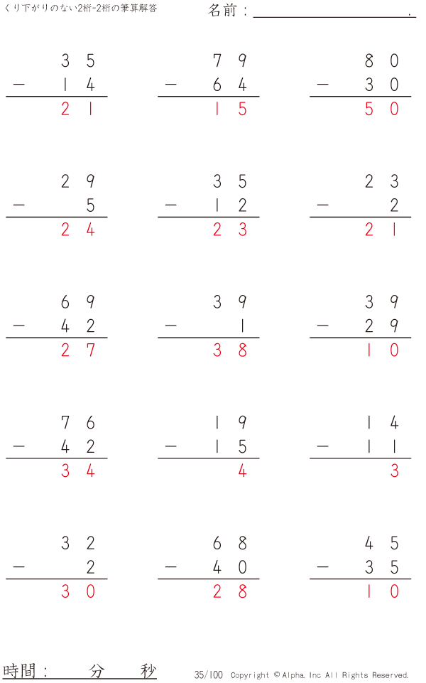くり下がりのない2桁-2桁 [解答]035/100