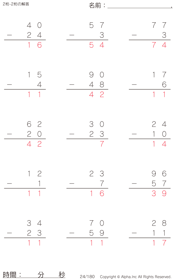 上記のボタンから「2桁-2桁の筆算」の算数数学ドリル・計算ドリル(PDFプリント)がダウンロードできます。個人利用は無料です(家庭以外での配布は有料です)。
