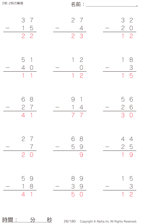2桁-2桁の筆算 [解答]026/180