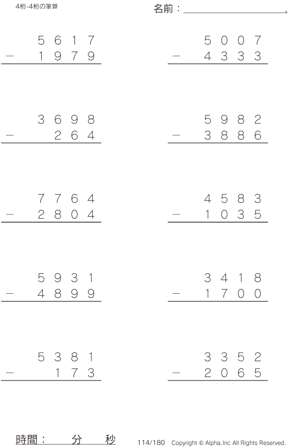 4桁-4桁の筆算 [問題]114/180