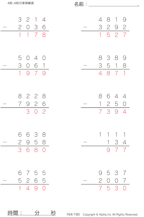 4桁-4桁の筆算 [解答]164/180