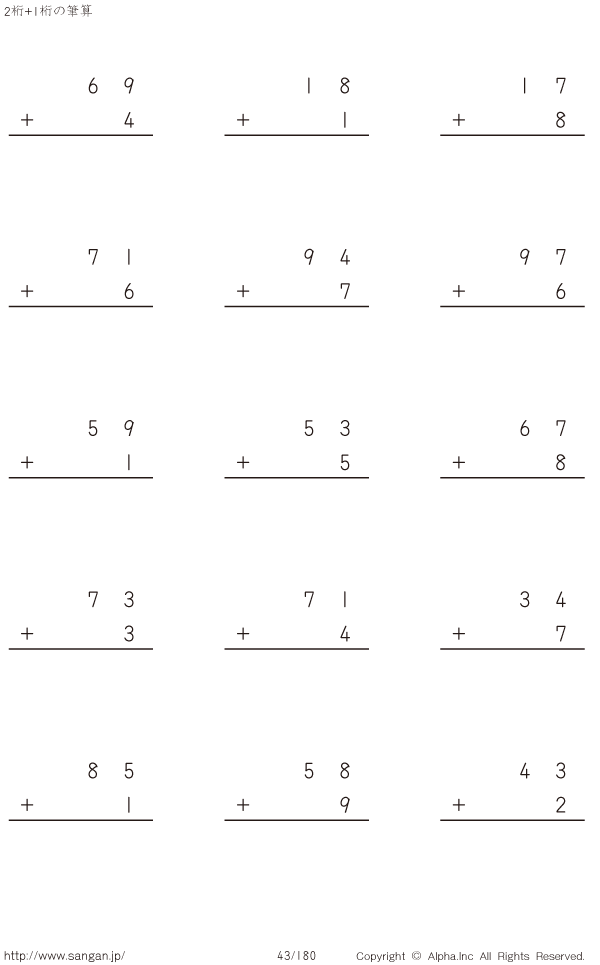 2桁+1桁の筆算 [問題]043/180