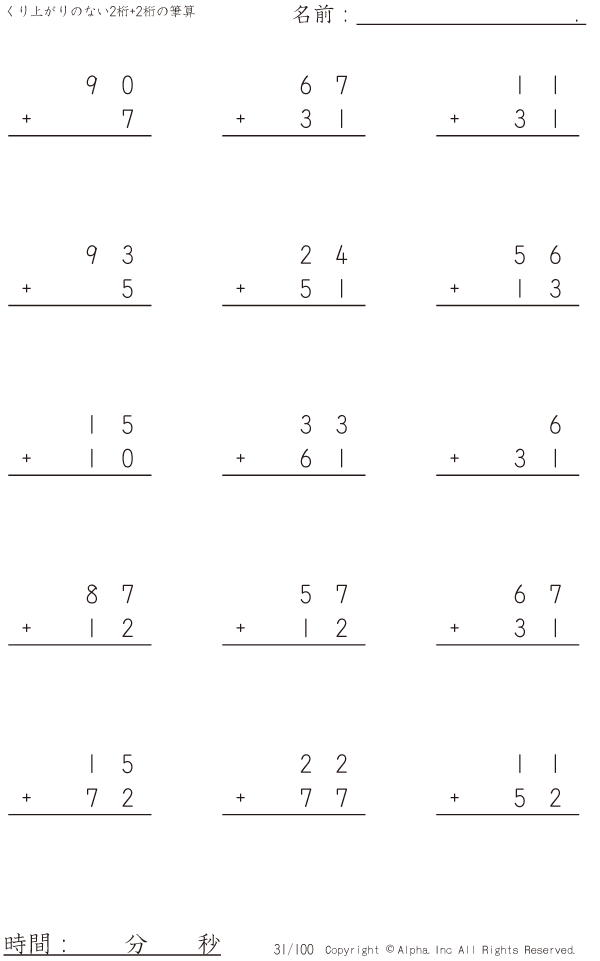 くりあがりのない2桁+2桁の筆算 [問題]031/100