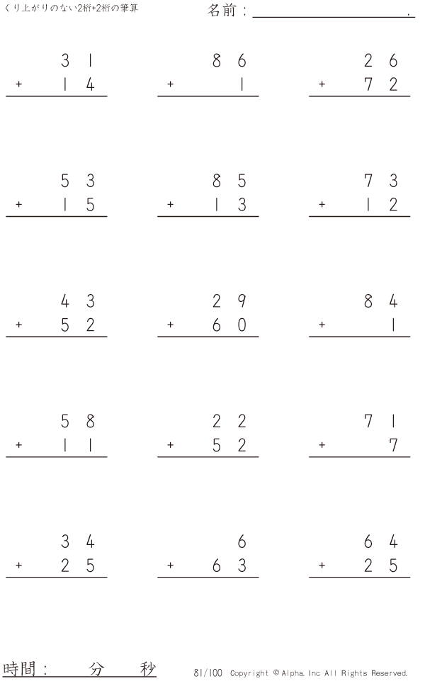 くりあがりのない2桁+2桁の筆算 [問題]081/100