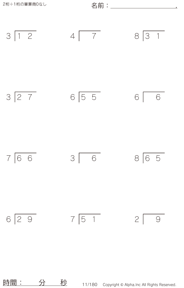 2桁÷1桁の筆算(商0なし) [問題]011/180
