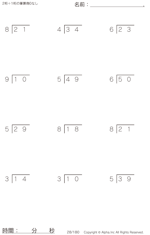 2桁÷1桁の筆算(商0なし) [問題]028/180
