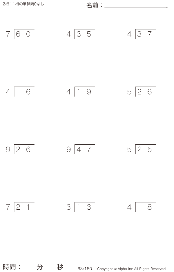 2桁÷1桁の筆算(商0なし) [問題]063/180