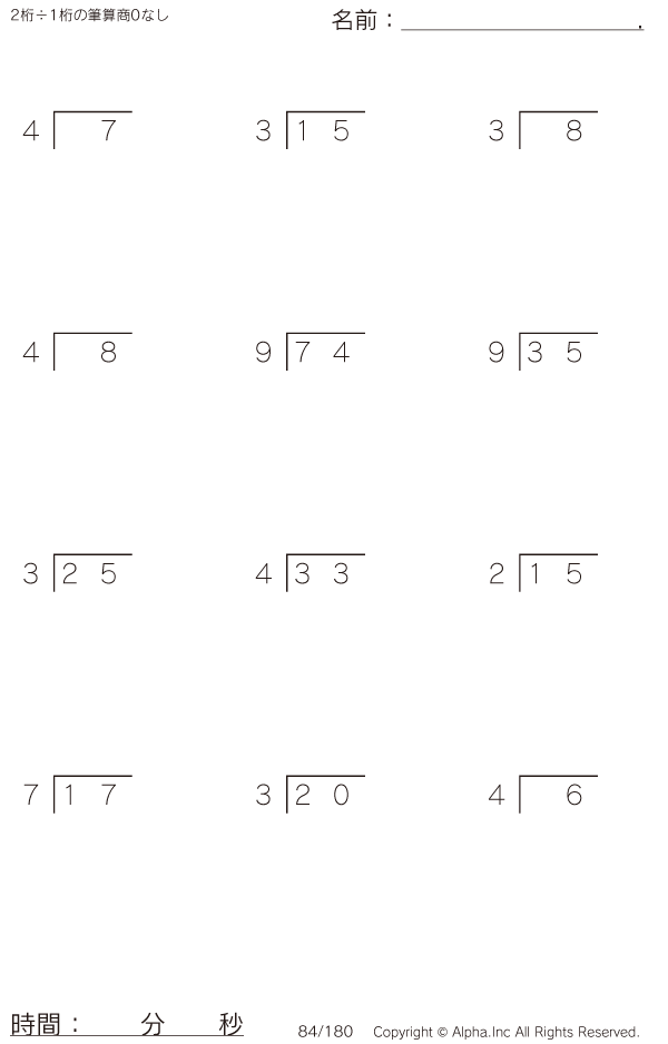 2桁÷1桁の筆算(商0なし) [問題]084/180