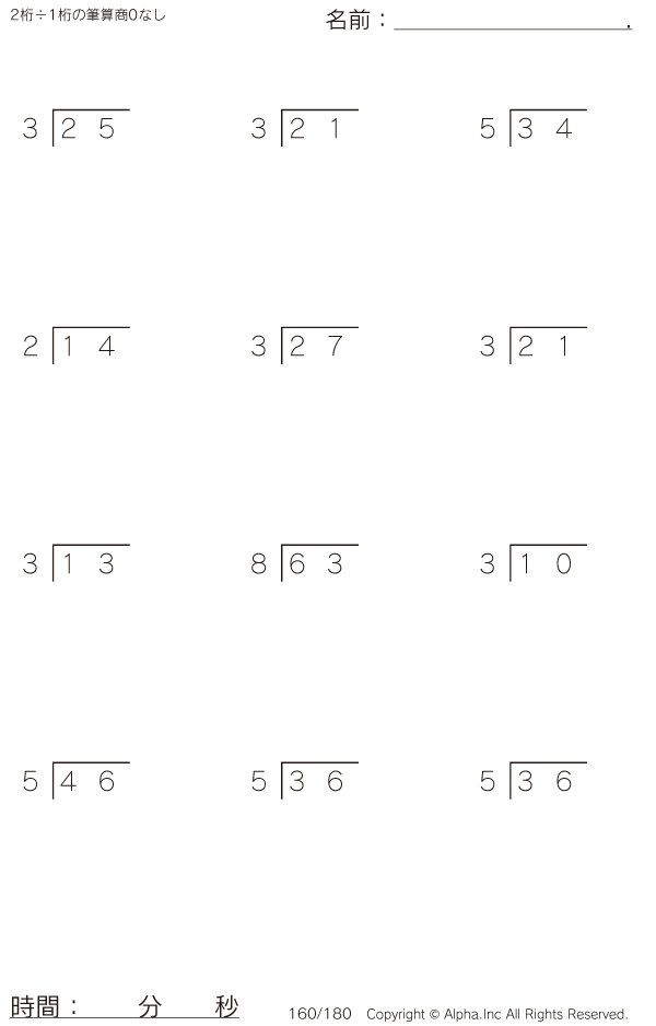 2桁÷1桁の筆算(商0なし) [問題]160/180