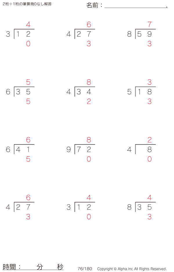 2桁÷1桁の筆算(商0なし) [解答]076/180