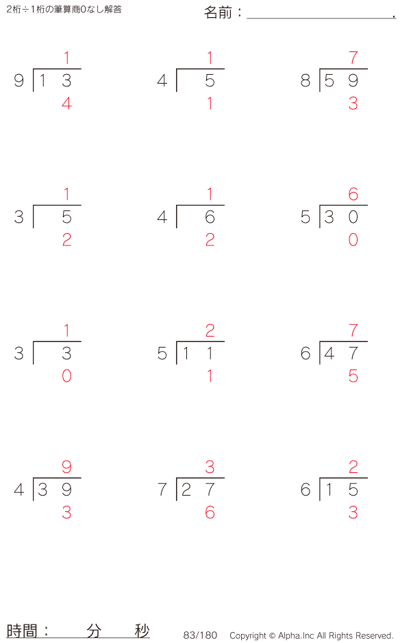 2桁÷1桁の筆算(商0なし) [解答]083/180