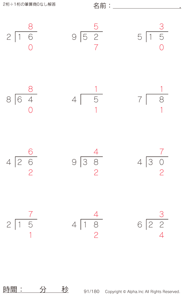 2桁÷1桁の筆算(商0なし) [解答]091/180
