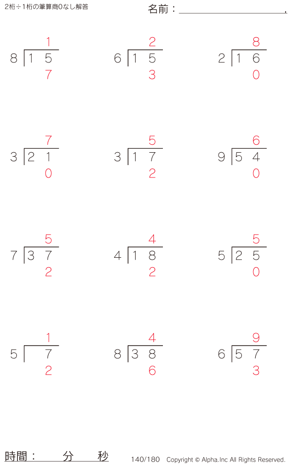2桁÷1桁の筆算(商0なし) [解答]140/180