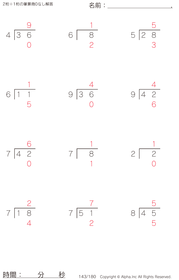 2桁÷1桁の筆算(商0なし) [解答]143/180