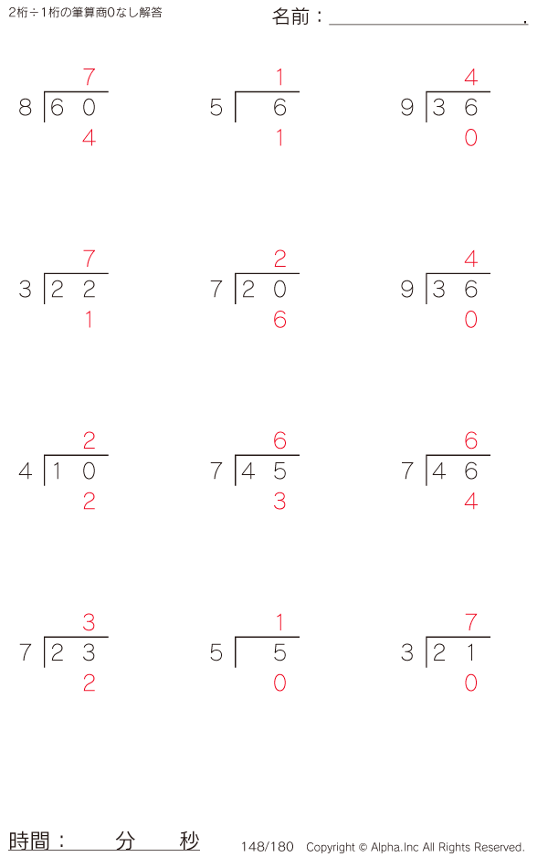 2桁÷1桁の筆算(商0なし) [解答]148/180