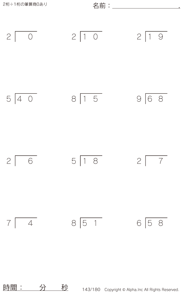 2桁÷1桁の筆算(商0あり) [問題]143/180