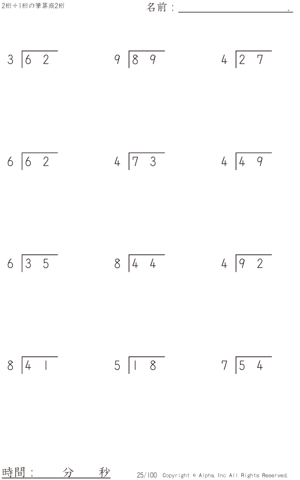 2桁÷1桁の筆算(商2桁) [問題]025/100