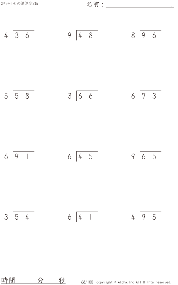 2桁÷1桁の筆算(商2桁) [問題]068/100