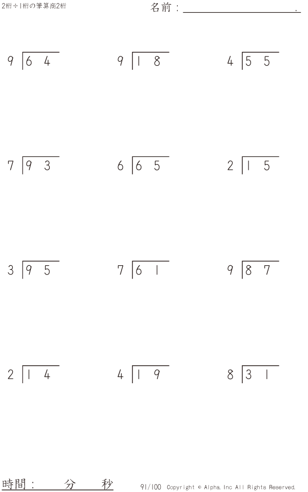 2桁÷1桁の筆算(商2桁) [問題]091/100