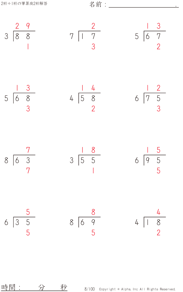 2桁÷1桁の筆算(商2桁) [解答]008/100