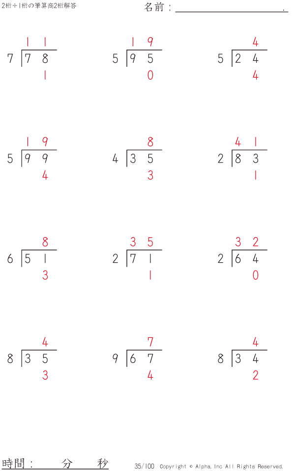 2桁÷1桁の筆算(商2桁) [解答]035/100