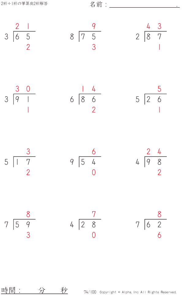 2桁÷1桁の筆算(商2桁) [解答]074/100
