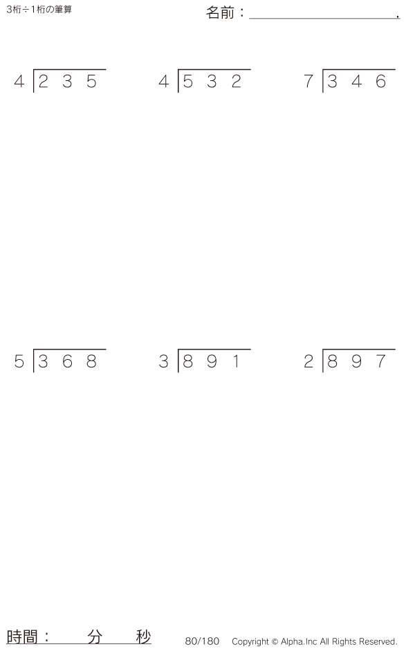 3桁÷1桁の筆算 [問題]080/180