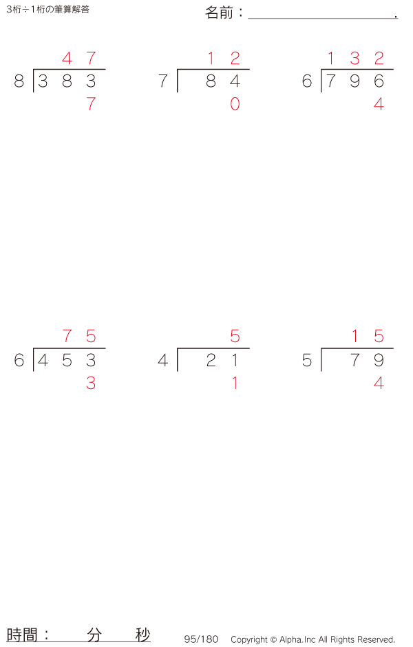 3桁÷1桁の筆算 [解答]095/180