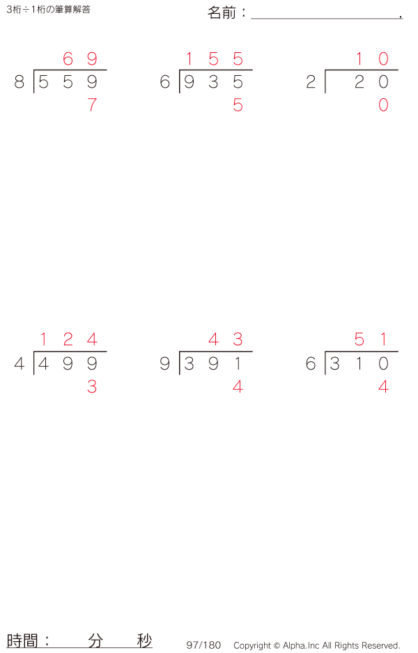 3桁÷1桁の筆算 [解答]097/180