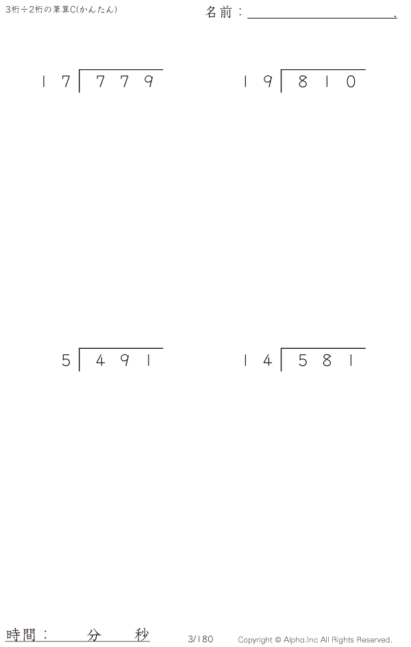3桁÷2桁の筆算0(20までの数値で割る) [問題]003/180