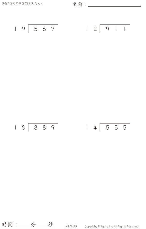 3桁÷2桁の筆算0(20までの数値で割る) [問題]021/180