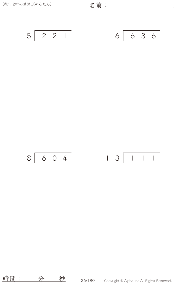 3桁÷2桁の筆算0(20までの数値で割る) [問題]026/180