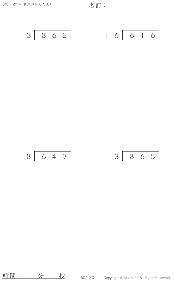 3桁÷2桁の筆算0(20までの数値で割る) [問題]060/180