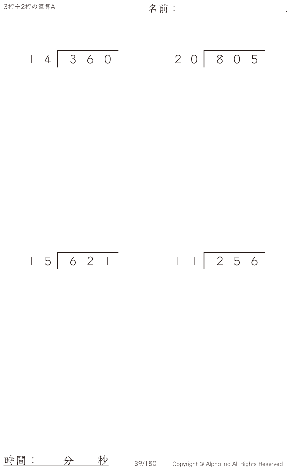 3桁÷2桁の筆算A(30までの数値で割る) [問題]039/180
