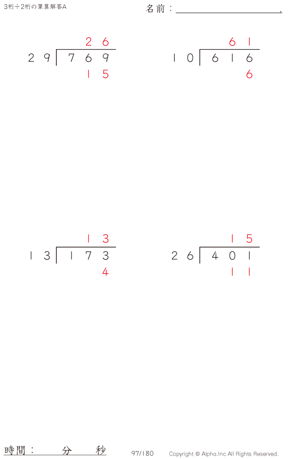 3桁÷2桁の筆算A(30までの数値で割る) [解答]097/180