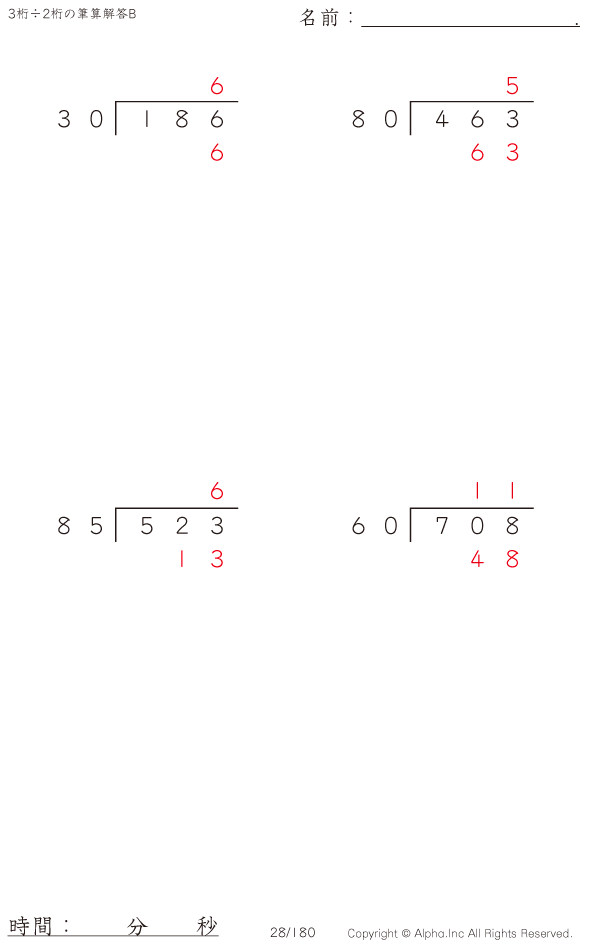 3桁÷2桁の筆算B(制限なし) [解答]028/180