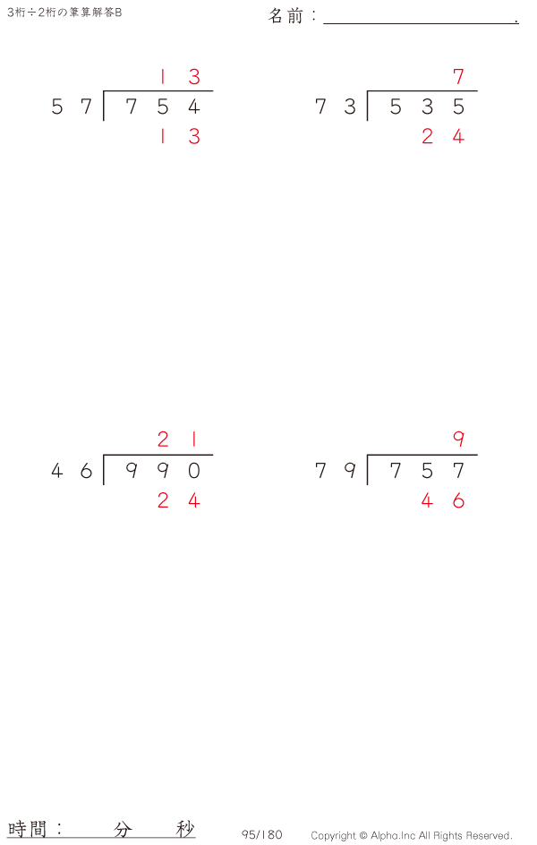 3桁÷2桁の筆算B(制限なし) [解答]095/180