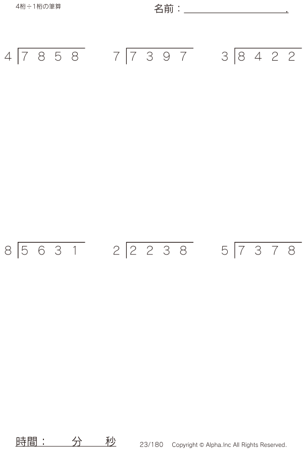 4桁÷1桁の筆算 [問題]023/180