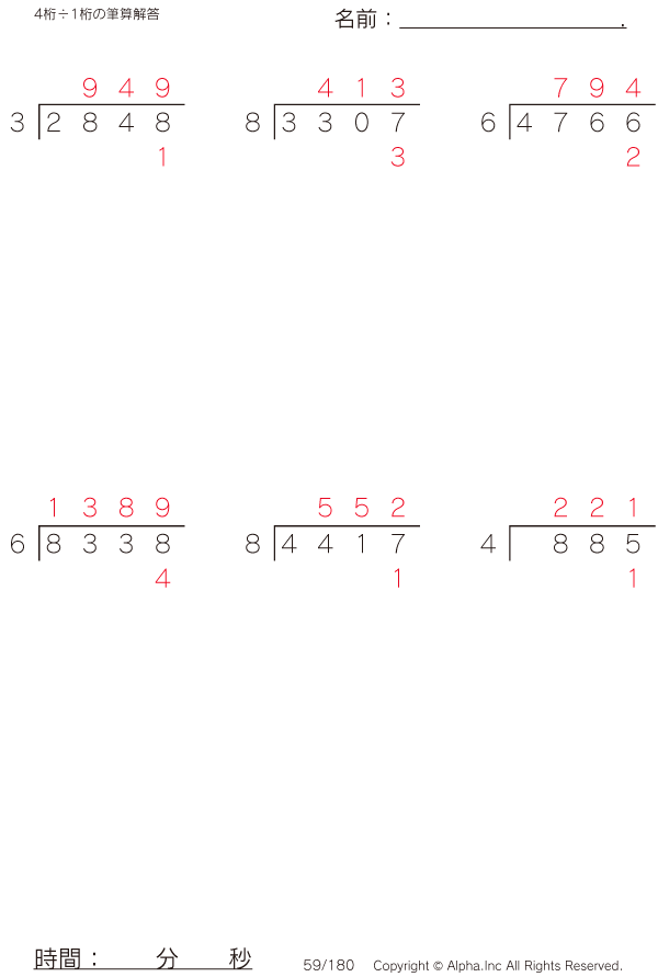 4桁÷1桁の筆算 [解答]059/180