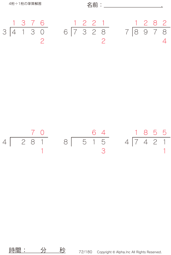 4桁÷1桁の筆算 [解答]072/180