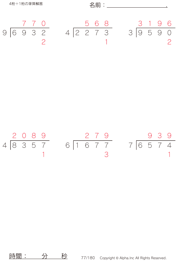 4桁÷1桁の筆算 [解答]077/180