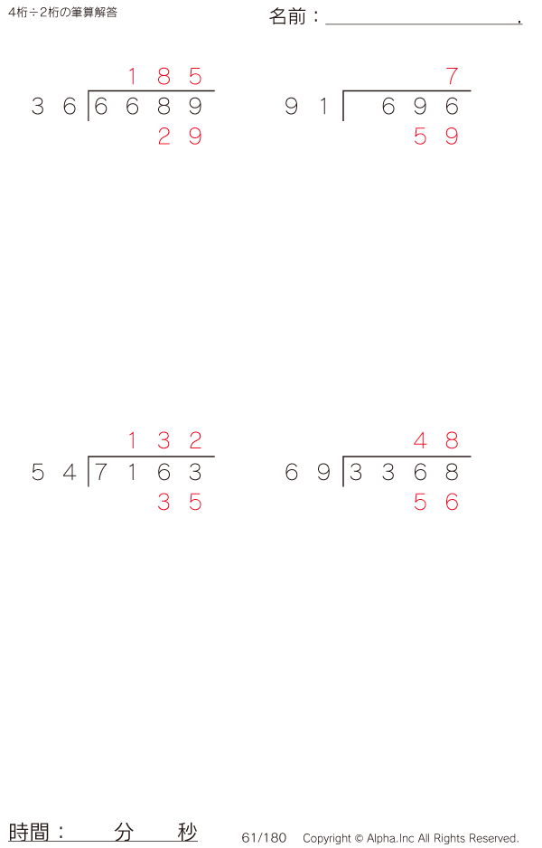 4桁÷2桁の筆算 [解答]061/180