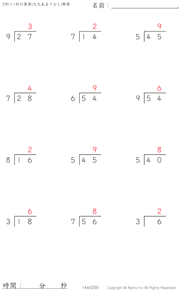 2桁÷1桁の筆算(九九 あまりなし) [解答]146/200