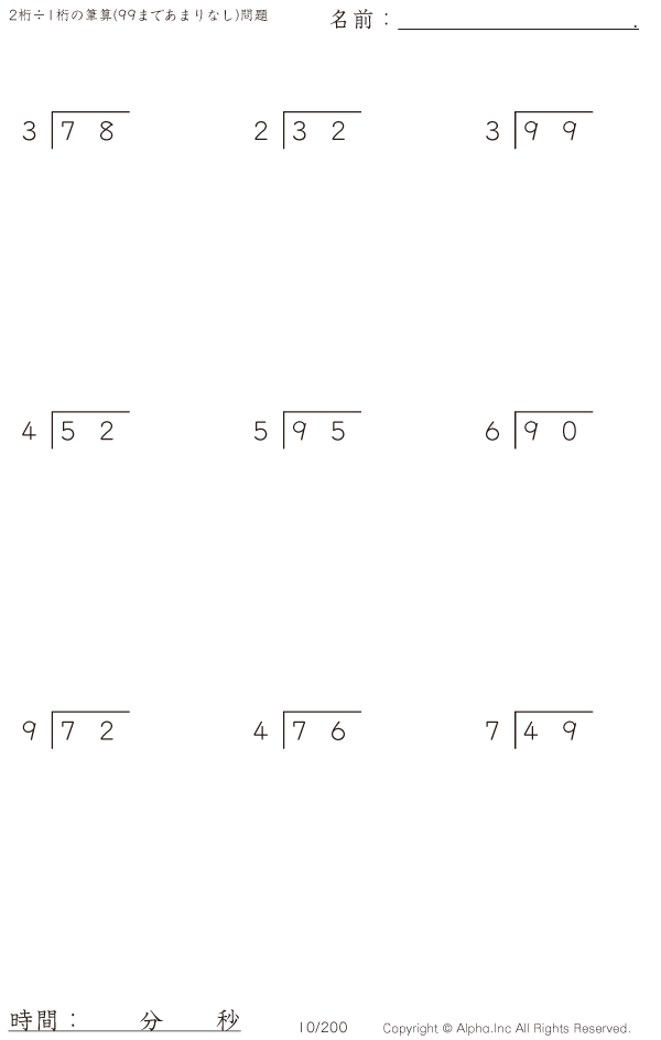 2桁÷1桁の筆算(あまりなし) [問題]010/350