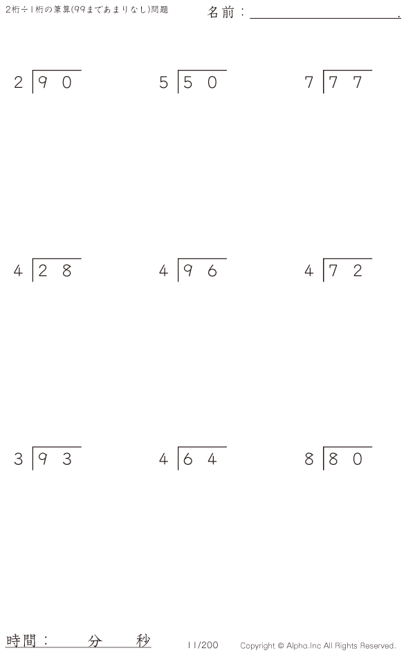 2桁÷1桁の筆算(あまりなし) [問題]011/350