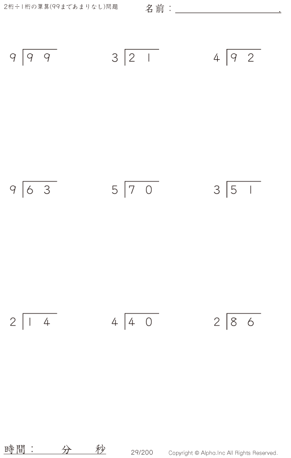 2桁÷1桁の筆算(あまりなし) [問題]029/350